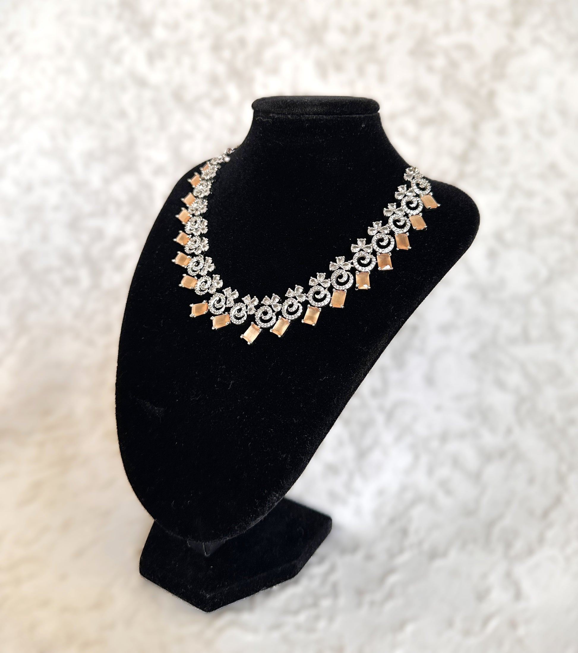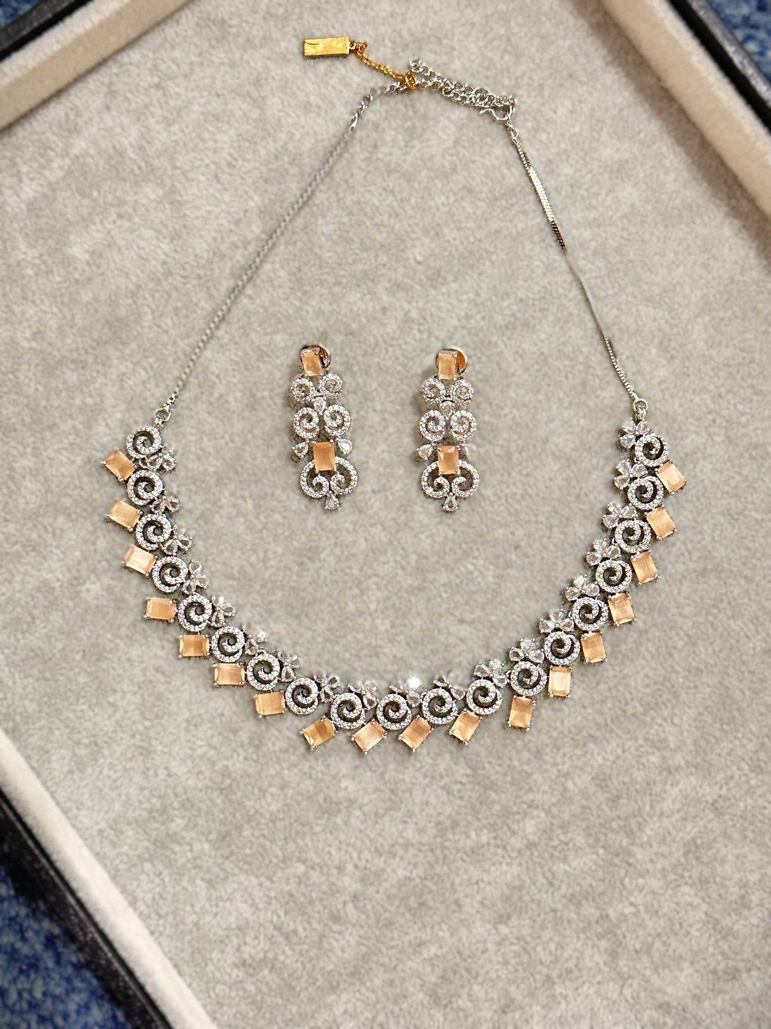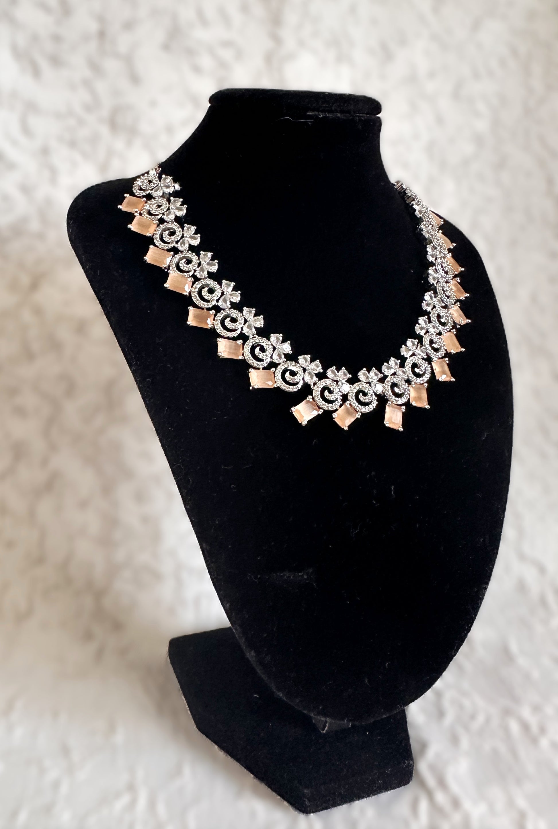 American Diamond Necklace Set- Peach